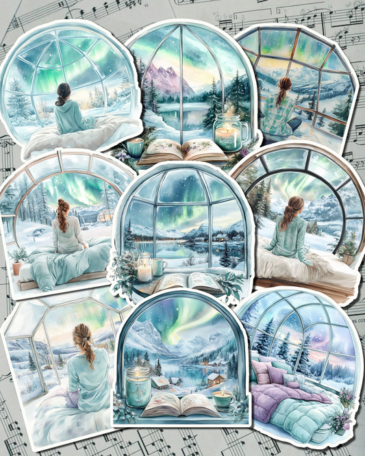 Lot de 9 Stickers Cosy northern lights cozy corner for journaling, scrapbooking, Crafts, HandArts.