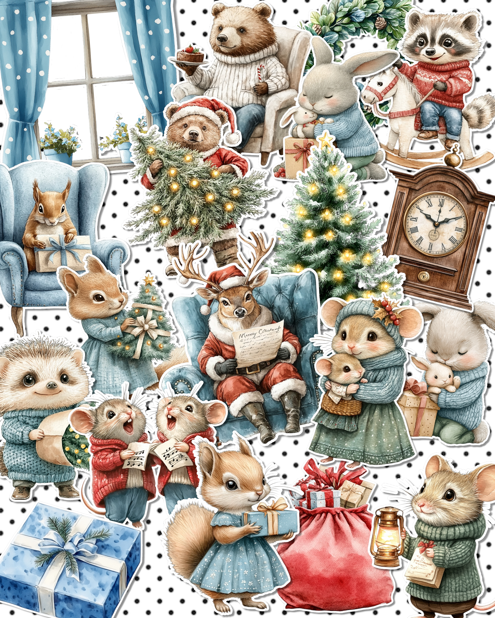 Lot de 17 Cozy Christmas Woodland Animals for journaling| Scrapbooking | Crafts| planners •