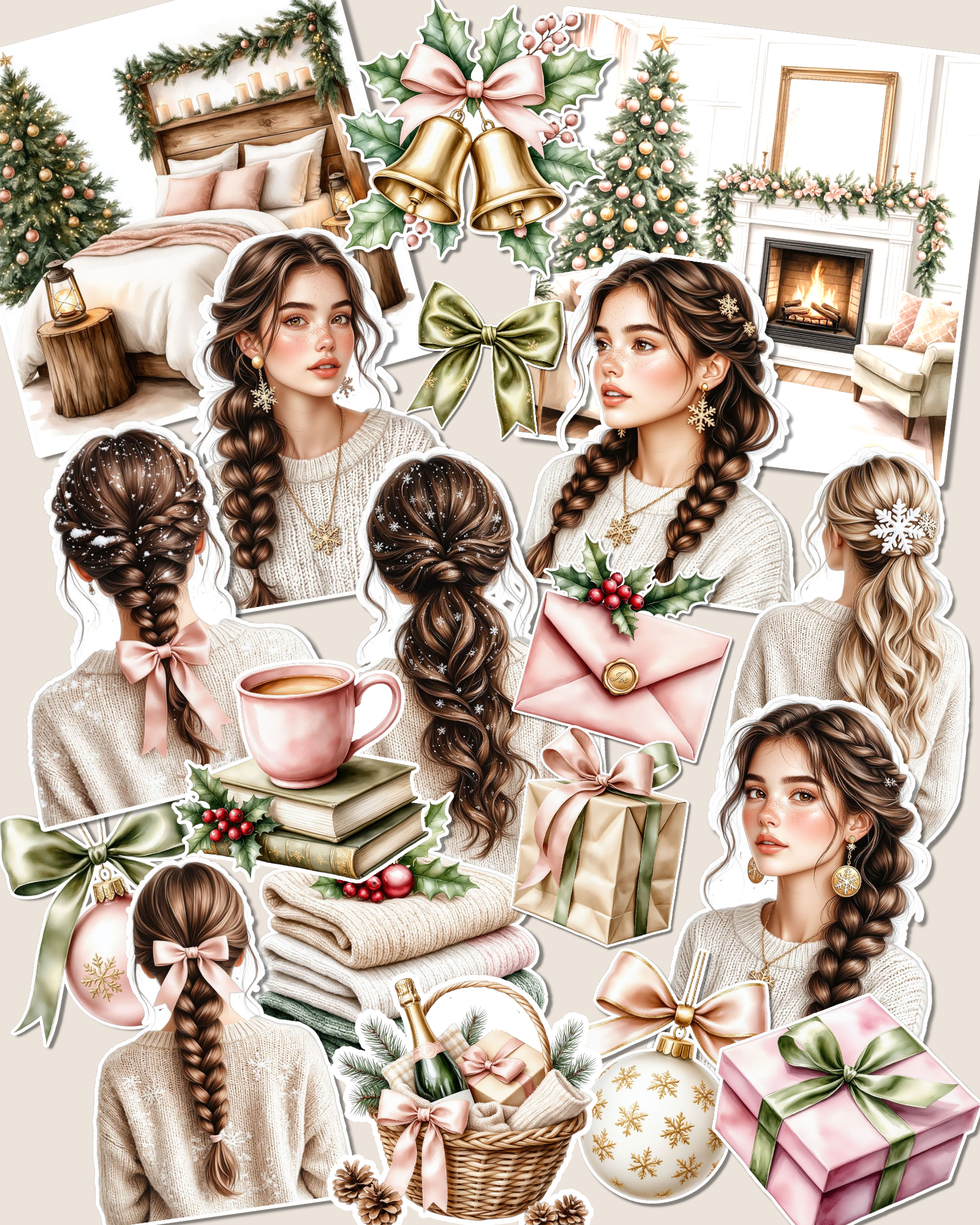 Lot de 17 Cozy dusty pink Christmas Stickers Collection for journaling| Scrapbooking | Crafts| Hand Arts •