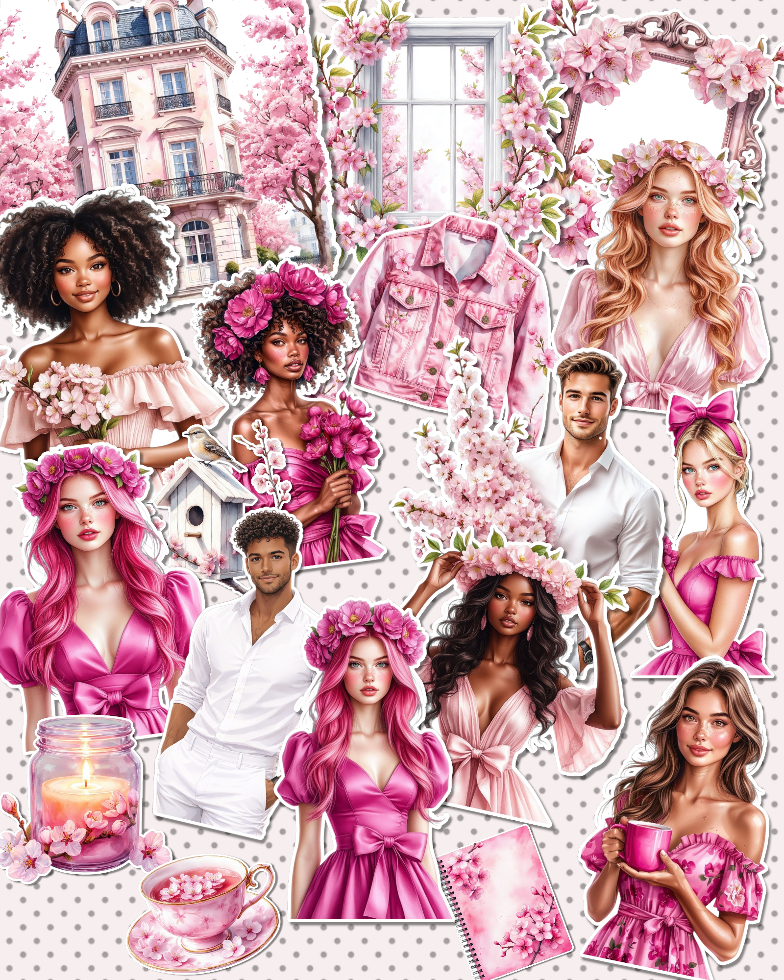 Lot de 17 Cozy Fushia Pink Valentine stickers for journaling| Scrapbooking | Crafts| planners •
