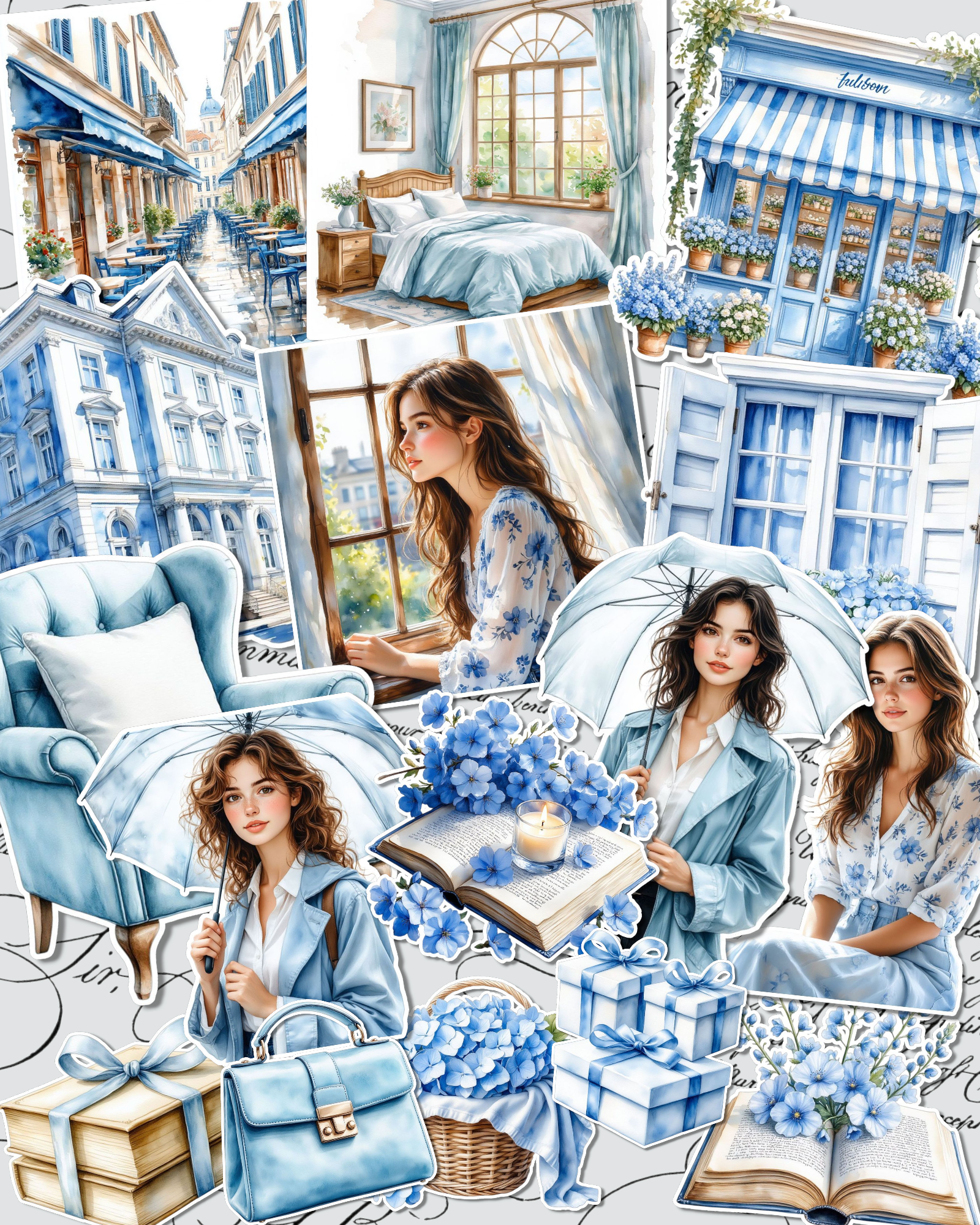Lot de 17 Soft and delicate sky-blue winter vibes stickers for journaling| Scrapbooking | Crafts| Hand Arts •