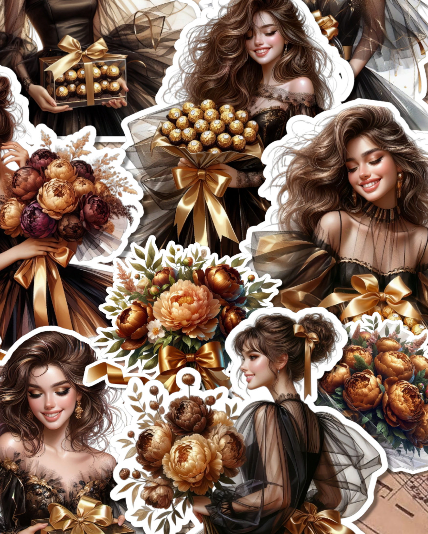 Lot de 17 stickers Chocolate Girl for journaling| Scrapbooking | Crafts| Hand Arts •