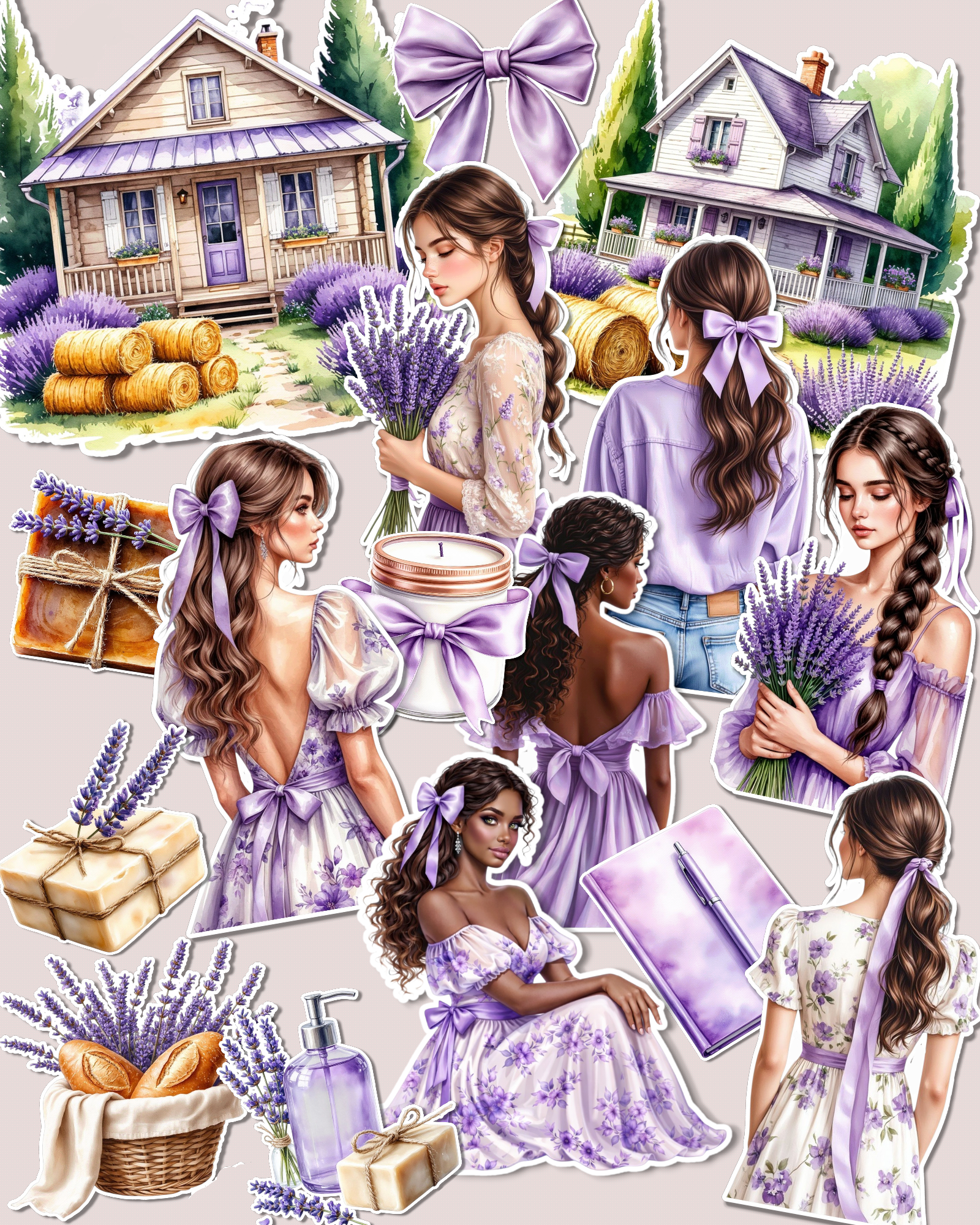 Lot de 17 stickers lavender summer for journaling| Scrapbooking | Crafts| Hand Arts •