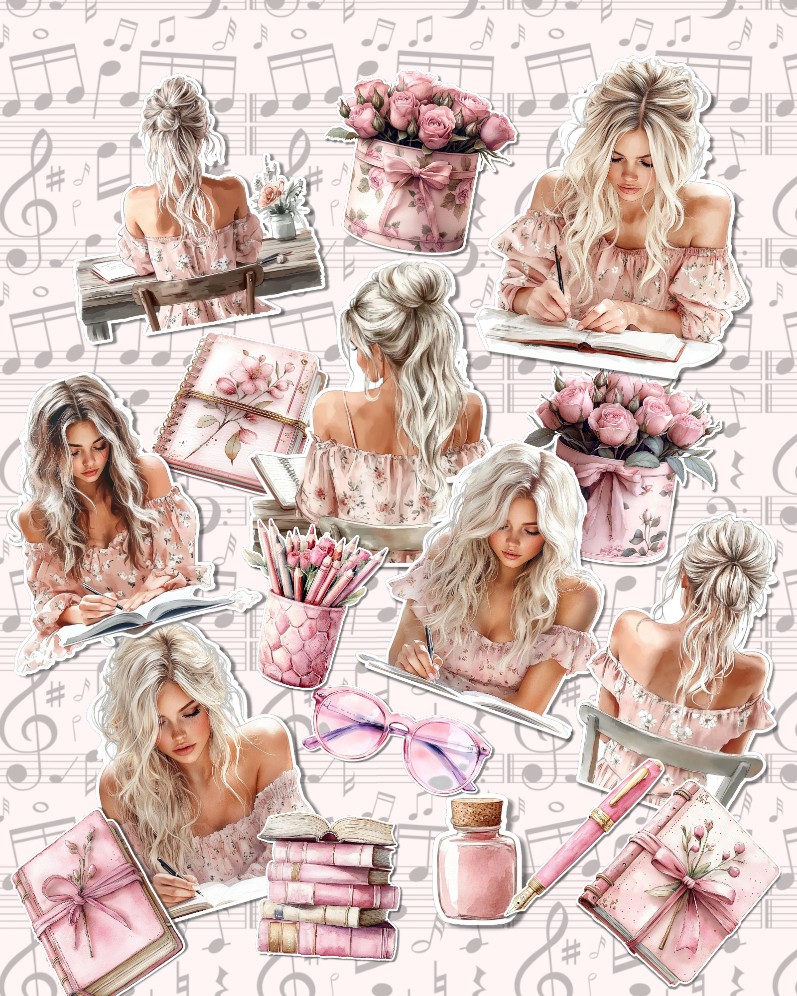 Lot de 17 stickers Reading cute girl set for journaling| Scrapbooking | Crafts| Hand Arts •