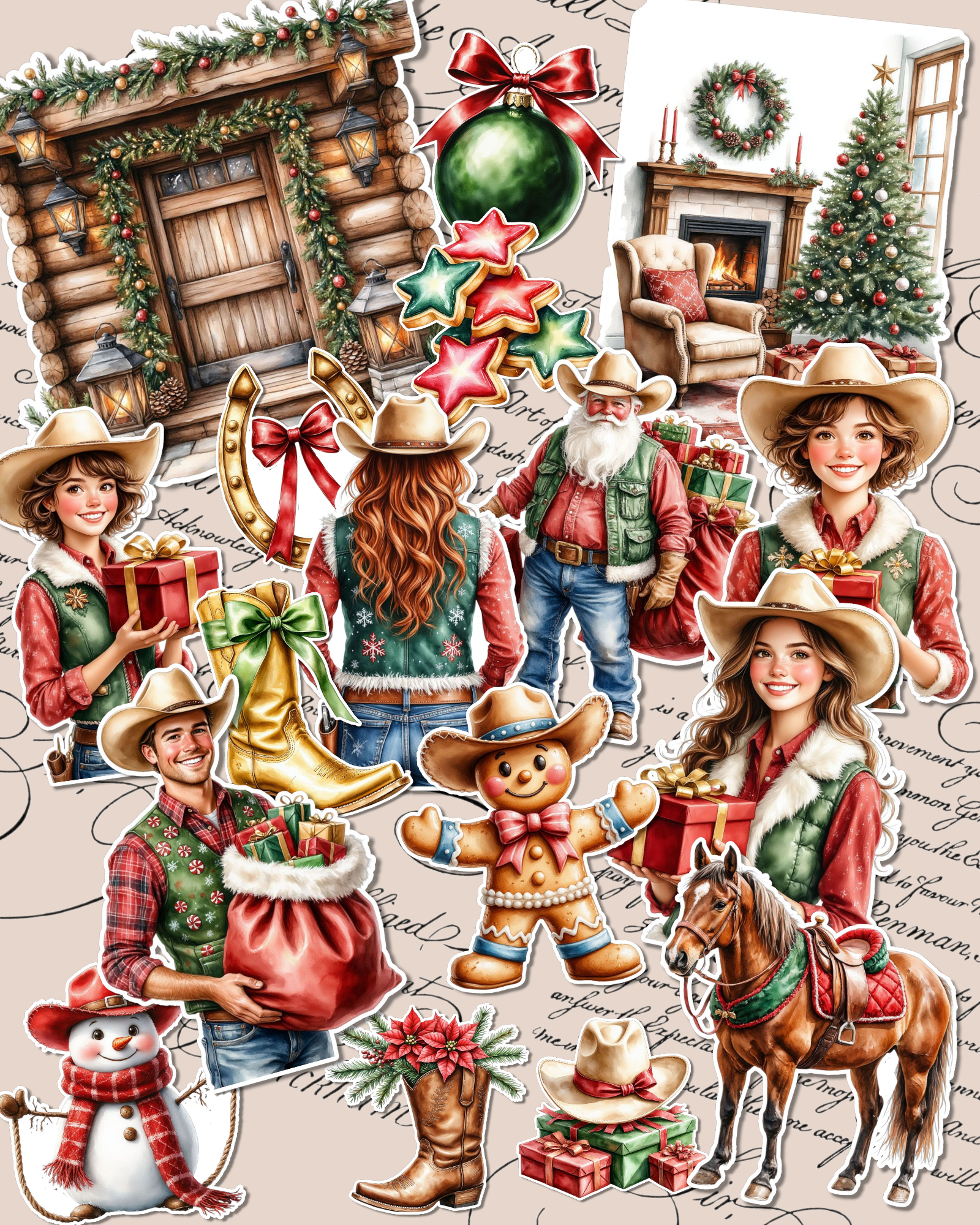 Lot of 17 Festive cowboy-themed Christmas stickers for journaling| Scrapbooking | Crafts| Hand Arts •